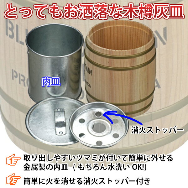 ■サイズ(約):フタ直径100mm 樽直径108mm 高さ(フタ含む) 125mm 容量0.35L ■素材:木樽・天然杉材 バケツ・亜鉛鉄板 ■付属品:外箱 【YDKG-kd】【楽ギフ_包装】【楽ギフ_名入れ】木樽灰皿 HiHi 035 バレル 老舗バケツメーカー渡辺金属工業製商品説明創業1923年(大正12年)老舗バケツメーカー渡辺金属工業の「オバケツ」より、木樽灰皿の登場です。